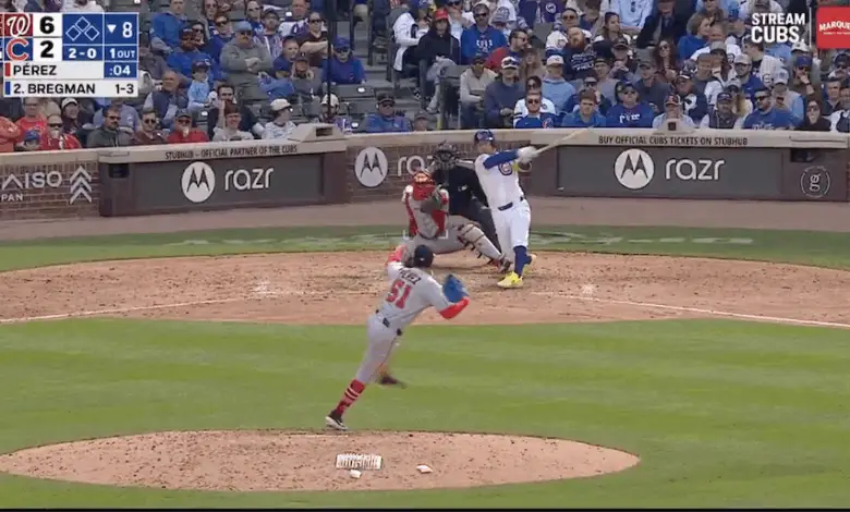 He hit a solo home run in the 4th inning today, his first home run as a Cub. And now he’s gone deep once again.